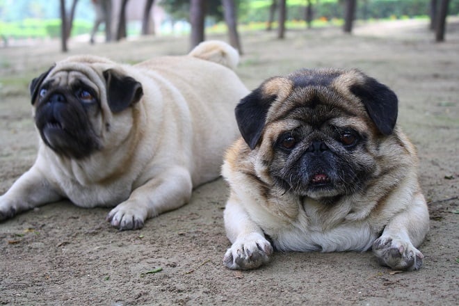 Deux carlins qui prennent la pose dans le parc. Crédit : daizuoxin