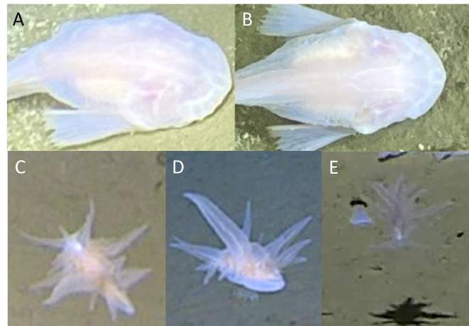 D’après leur description, elle se déplace lentement et ses représentants ressemblent à des limaces de mer (nudibranches) ou concombres de mer. Ils ont pu l’observer par deux fois. Il est également intéressant de constater que 600 mètres plus en profondeur, les chercheurs ont aperçu des éponges carnivores (de la famille des Cladorhizidae), soit les plus profondes jamais vues. Et non loin de là, ce sont des animaux marins dotés d’un squelette calcaire (crinoïdes) qu’ils ont croisés.
