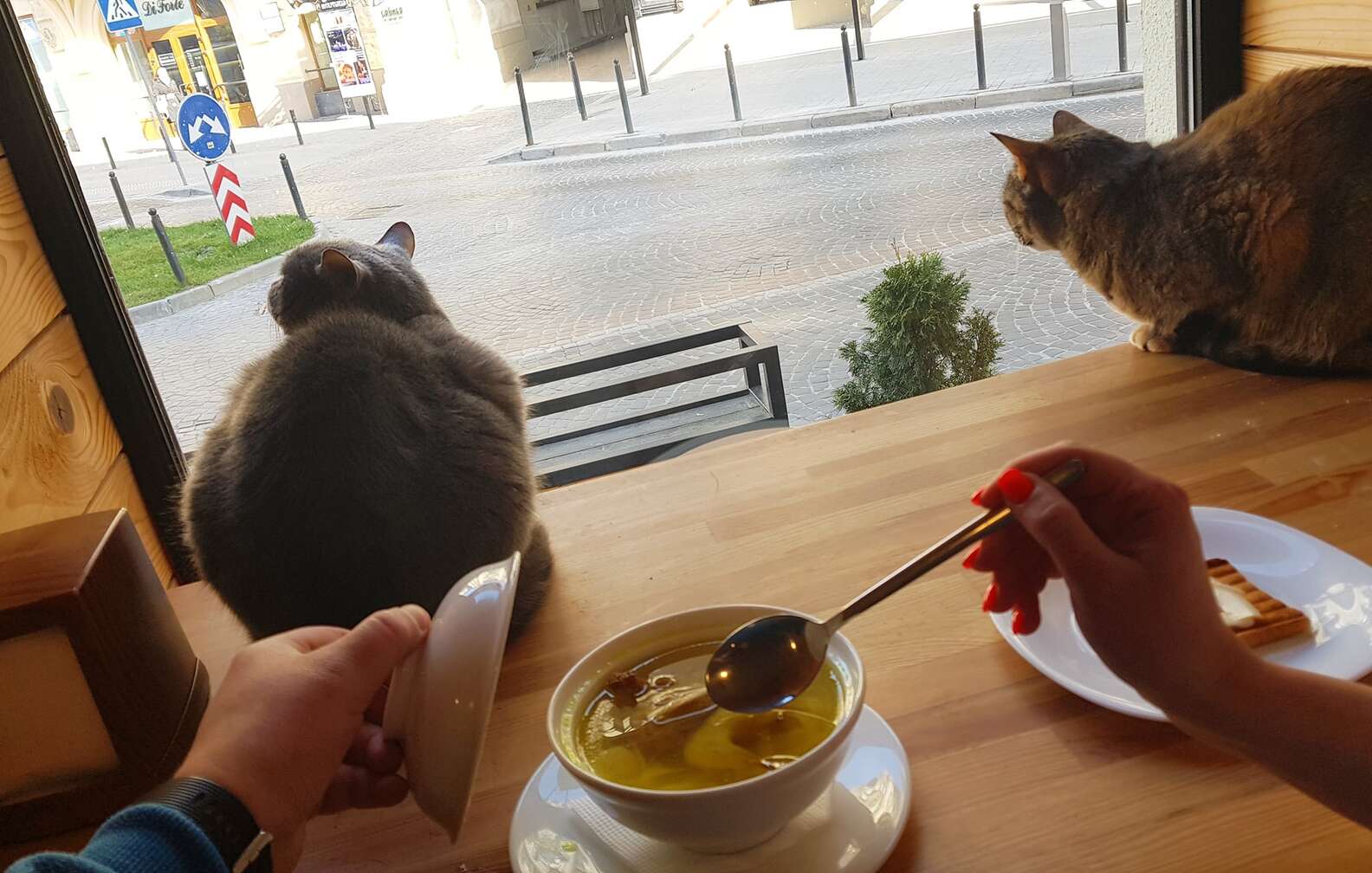 « Nous avons actuellement moins de visiteurs réguliers, mais il y a des gens qui sont venus d’autres villes et qui ont besoin de plats chauds et d’émotions positives, a déclaré Serhii Ollinyk. Maintenant, presque personne ne travaille dans la ville, mais il y a des gens qui ont été forcés de quitter leurs maisons ailleurs en Ukraine, en raison de l’invasion russe. Nous voulons qu’ils puissent manger, boire et se détendre après un voyage difficile. Nous ne voulons pas laisser l’Ukraine à un pays voisin car nous sommes chez nous. Il y a trois grandes salles dans notre café, dont deux sont situées au sous-sol, donc en cas d’avertissement de raid aérien, il y a un abri sûr pour nos invités et nos chats. »