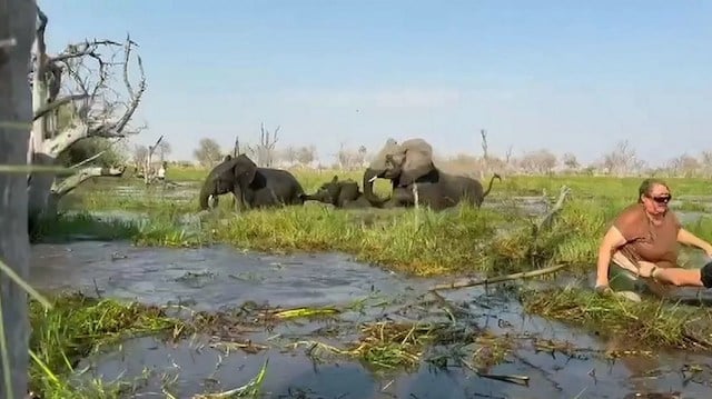 The moment an elephant charged at tourists in Botswana 🇧🇼 Okavango Delta on Saturday.