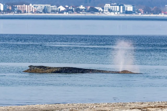 Une baleine à bosse, longue de dix mètres, s’est échouée lundi 23 mars sur un banc de sable dans les eaux peu profondes de la baie de Lübeck, en mer Baltique, au nord de l’Allemagne, rapporte le magazine People.