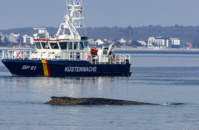 « L’animal est toujours vivant, il respire, émet des sons et relève parfois la tête », a déclaré Carsten Mannheimer, de l’organisation de protection des océans Sea Sheperd, à l’Associated Press.