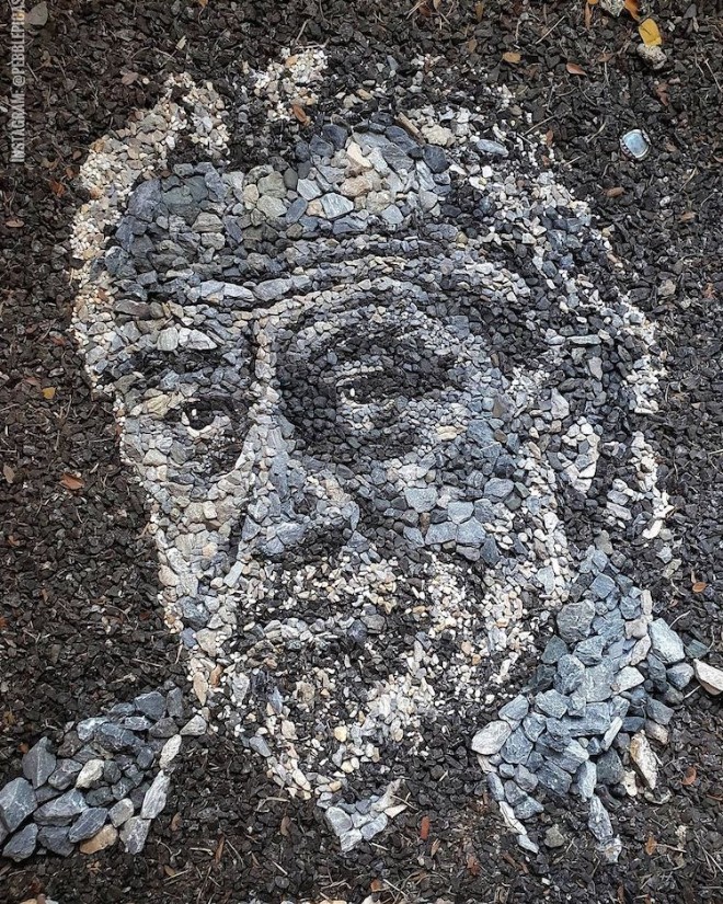 Ceci étant dit, bien que chaque tableau finisse par disparaître, Justin Bateman pense toujours à capturer des photos de son travail. Et heureusement pour nous, car cela nous permet d'admirer les détails impressionnants de ses œuvres. Chaque portrait de galet ressemble presque à une photographie en sépia ou en niveaux de gris, avec ses ombres chaudes et ses reflets pâles rendus par les pierres. Il est incroyable de voir la profondeur et les détails qu’il parvient à obtenir avec de simples galets ramassés à même le sol.