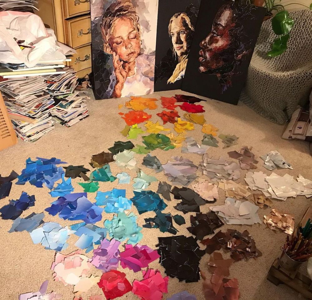 Déjà peintre de talent, Madeline a décidé récemment de se lancer dans un nouveau projet dont elle seule a le secret. En effet, grâce à sa créativité sans limite, elle est parvenue à créer son propre art en découpant les magazines en petits bouts de papier. Évidemment, cela ne s’arrête pas là. Une fois cette étape terminée, elle les classe par couleur et les utilise pour réaliser des tableaux incroyables sous forme de collages en mosaïque.