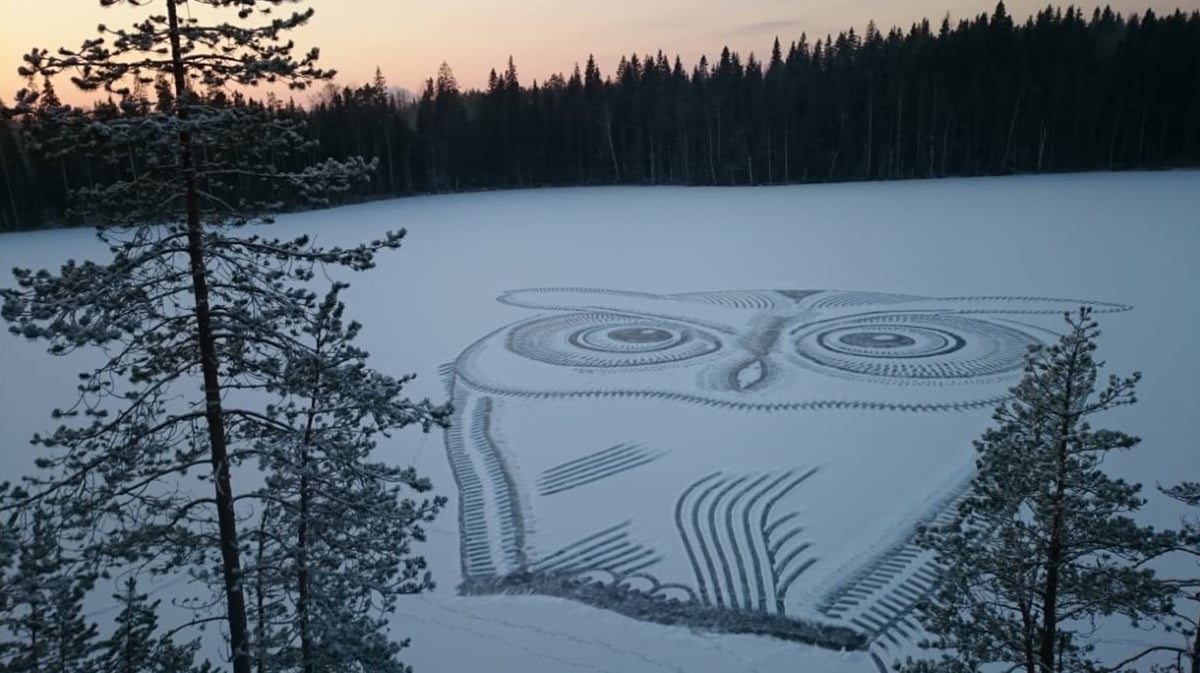 Depuis six ans, il s’en est fait une tradition. Pasi Widgren fait parler sa créativité, une fois par an, sur la glace du lac Pitkajarvi, situé au nord de Helskinki, représentant des animaux. Cette fois-ci, il a réalisé une fresque géante représentant un renard sur 90 mètres.
