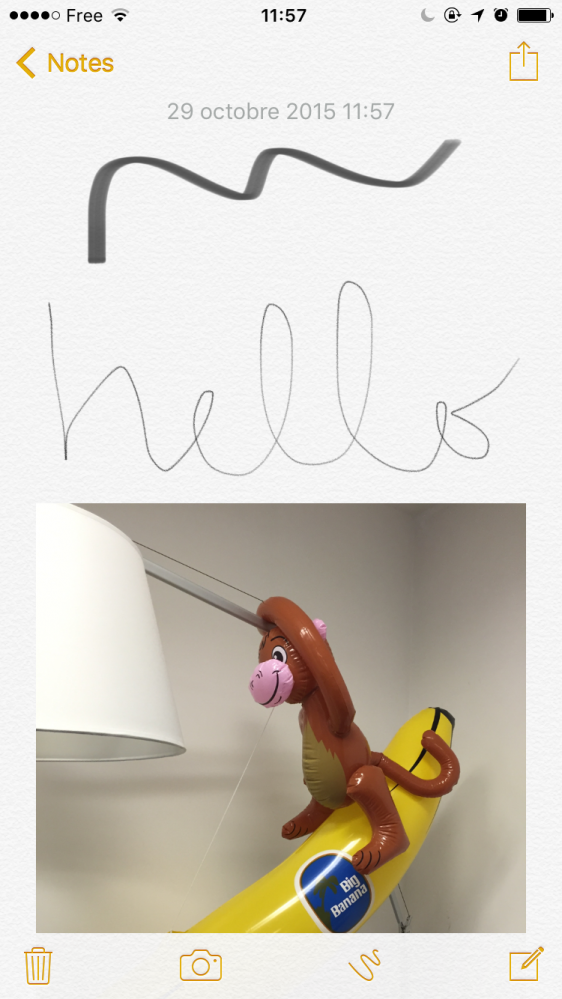 Pour cette dernière mise à jour, l’application Notes fait peau neuve et propose de nombreuses options innovantes. Désormais, on peut y dessiner avec plusieurs outils et même insérer des photos. La photo ci-dessus est encore le meilleur exemple de ce que la nouvelle version de Notes est capable de faire.