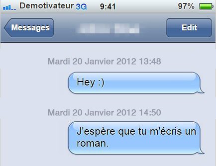 L'autre alternative, c'est de faire en sorte que l'autre réponde grâce à ce que l'on écrit. Parfois ça marche, parfois ça ne marche pas, mais c'est toujours drôle !