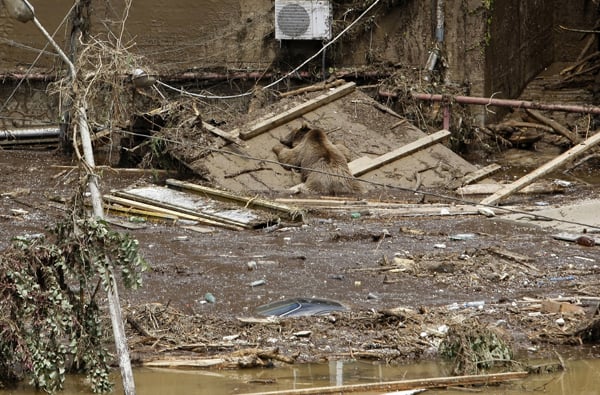 Ces photographies montrent bien l’étendue des dégâts dans la ville, et la détresse de ces animaux habitués à être en captivité. Ici, un ours essaie de sortir de l'eau.