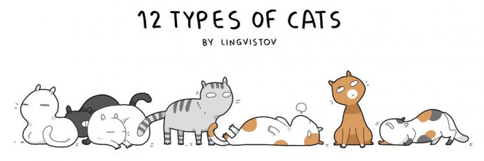 Classifier les chats est un véritable défi : il y en a de toutes les formes, de toutes les couleurs, et chacun a une personnalité unique et ses petites habitudes bizarres. Pourtant l'artiste Lingvistov a quand même essayé de s'atteler à la tâche, et ça donne ça.
