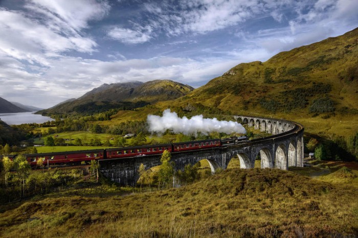 Ce paysage apparaît pour la première fois dans Harry Potter et la chambre des secrets. Harry et Ron ont pris la voiture volante de la famille Weasley et survolent au-dessus du Poudlard Express. C’est aussi au milieu de ce cadre qu’Harry rencontre pour la première fois un Détraqueur dans Le Prisonnier d’Azkaban, quand le Poudlard Express est arrêté en plein milieu du pont. 2. Le Loch Shiel.