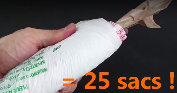 Pour ne plus avoir ce problème, c’est très simple : il vous suffit de mettre vos sacs bien à plat, puis de les plier en deux. Ensuite, placez vos sacs les uns derrière les autres, les poignées du second sac chevauchant l’arrière du sac précédent, et ainsi de suite. Roulez au fur et à mesure. À la fin, vous obtiendrez un rouleau de sacs prêts à l’emploi qui ne prendra que très peu d’espace !