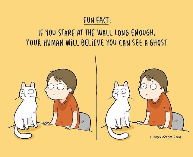 14. « Fait marrant : si tu fixes le mur suffisamment longtemps, ton humain croira que tu peux voir les fantômes »