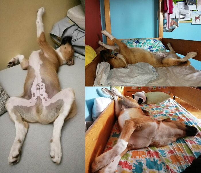 Et beaucoup ont sans doute remarqué que même lorsqu’il s’agit de dormir, il n’est pas rare que les chiens et les chats nous surprennent par des positions plus improbables les unes que les autres. C’est vrai, qui n’a jamais surpris sa boule de poils en train de somnoler les quatre pattes en l’air, le corps plié dans tous les sens, la langue qui dépasse de la bouche ou encore les yeux grands ouvert ? À chaque fois, on se demande comment elle fait pour apprécier dormir dans de telles conditions et pourtant elle a l’air d’être dans un sommeil tellement profond. Résultat, on ne la dérange pas mais on rit volontiers en voyant ce dont elle est capable.