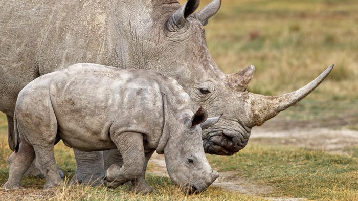 10. Une maman rhinocéros et son bébé de deux mois près du Lac Nakuru, au Kenya