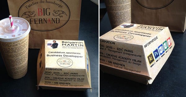 1. Celui qui a répondu à une annonce pour une chaîne de restaurants, avec la lettre de motivation sur le gobelet !