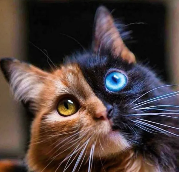 Coupé en deux parties, le visage de Quimera est noir avec un œil bleu d’un côté et brun avec un œil jaune-vert. La chatte est tout simplement resplendissante. D’après les spécialistes, l’équilibre presque parfait des chats chimères est le résultat d’une fusion d’embryons. En effet, au départ, il y avait deux embryons dans le ventre de la mère. Pour une raison inconnue, les deux embryons fusionnent pour devenir un seul et même embryon.