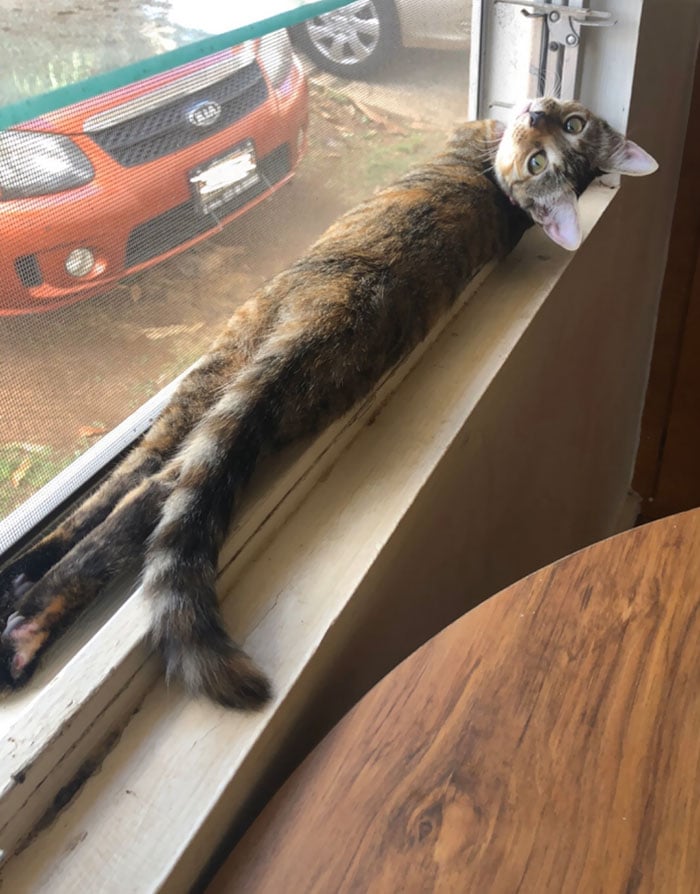 C’est bien connu, les chats se faufilent partout et leur corps élastique leur permet bien souvent d’accéder aux recoins les plus étroits, y compris dans les endroits les plus inconfortables.