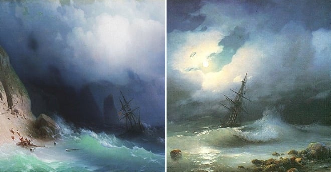 Ce qui distingue les peintures de paysages marins d'Aivazovsky des autres est sa capacité à reproduire à la fois l'intensité et le mouvement. Il suffit d’observer attentivement l’un de ses tableaux pour se rendre compte à quel point ils sont détaillés. Mais ce n’est pas tout ! Ivan Konstantinovich Aivazovsky joue également avec les couleurs, simulant les effets de la lumière du soleil filtrant à travers les eaux pour un rendu hors-norme. Les amateurs d’art y verront sans doute une ressemblance avec le travail de Johannes Vermeer sur le clair-obscur.