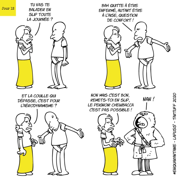 L’auteur de la bande dessinée « Putain de chat », Lapuss’, s’essaie à un nouveau registre. Chaque jour, il publie sur ses réseaux sociaux un dessin en rapport avec le confinement avec son acolyte Tartuff. Fou rire garanti.