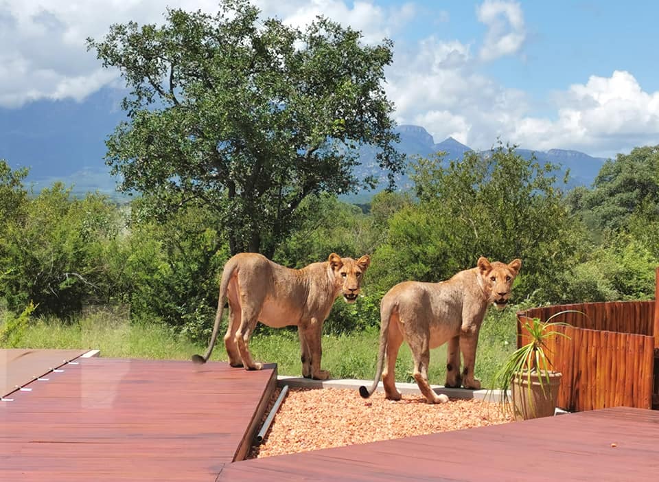 En effet, des résidents de la petite ville agricole d’Hoedspruit, située entre le parc national Kruger et le Blyde River Canyon, dans le nord-est du pays, ont eu la surprise de découvrir sur sa terrasse un groupe de lionnes.