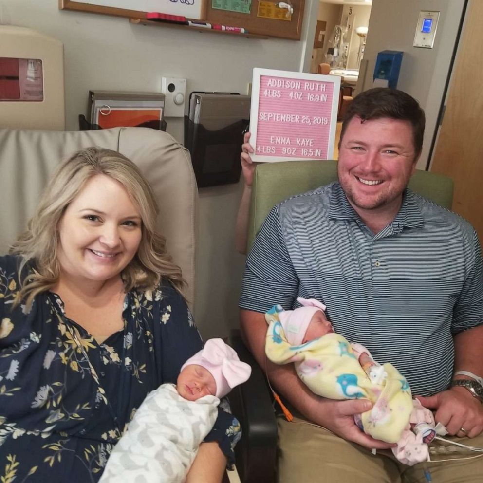 L’accouchement s’est très bien passé et chacune des jumelles – nées prématurément après 32 semaines et 6 jours de grossesse - a été photographiée avec l’une des deux infirmières, afin d’immortaliser ce moment pas banal.