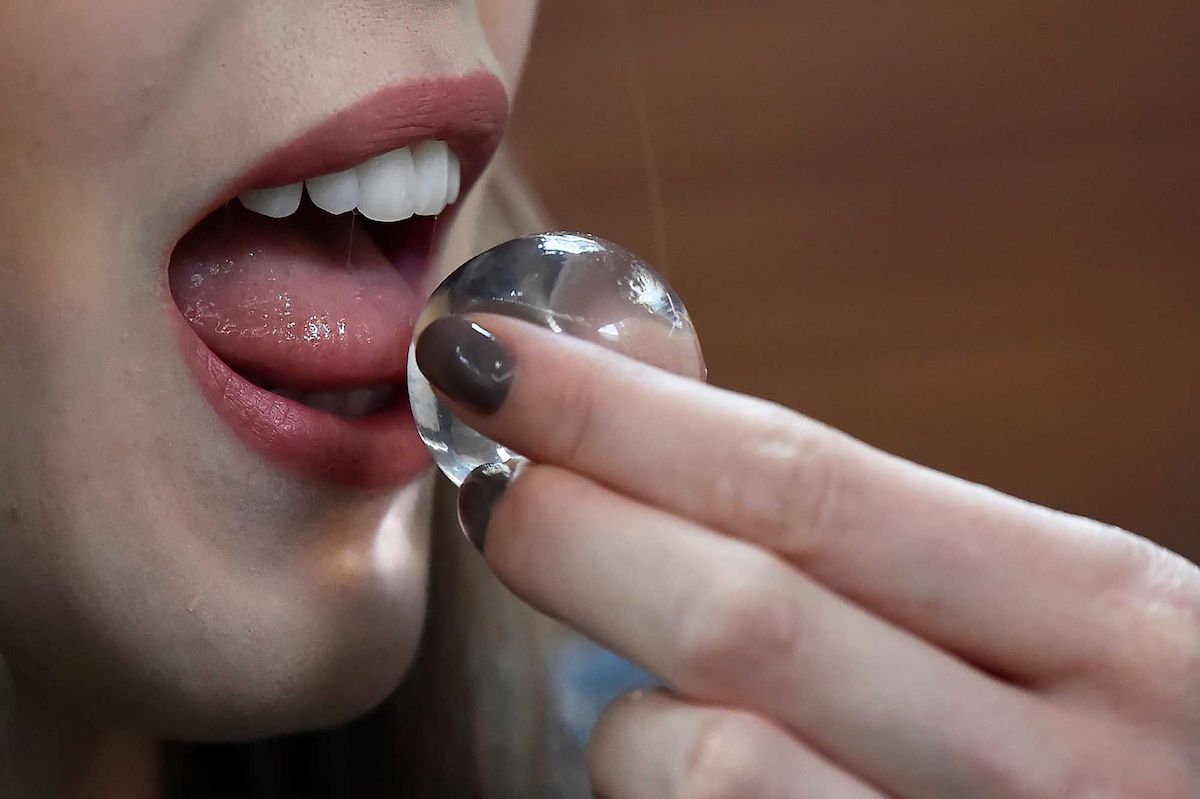 La bulle d’eau comestible et biodégradable pour remplacer la bouteille en plastique. Crédits photo : Ooho