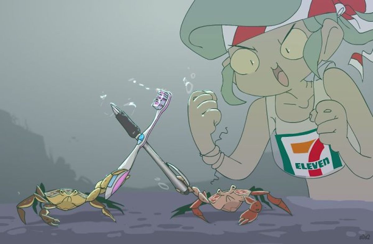 « Quand j’ai commencé à dessiner, je me suis demandée ce qu’elle devrait porter. Pour être honnête, je trouvais ces soutiens gorges classiques en coquillages ennuyeux et je me disais : 'J’ai besoin de quelque chose de plus réaliste. Que porterait une sirène en ce moment ? Que trouverait-elle dans l’océan ?' C’est alors que le sac plastique m’est venu à l’esprit. Cela a déclenché beaucoup de nouvelles idées par la suite…» A-t-elle révélée.