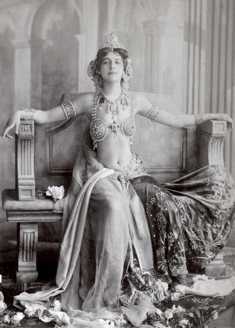 Débarquant à Paris en 1903, elle commence sa « carrière » de courtisane/prostituée auprès d’hommes riches avant de se former son personnage de danseuse orientale, souvent dénudée, au « Nouveau Cirque ». C’est à ce moment-là qu’elle prend le nom de « Mata Hari » signifiant « Soleil Levant » en malais. Ses performances érotiques et exotiques envoûtent le public parisien qui n’a d’yeux que pour elle.