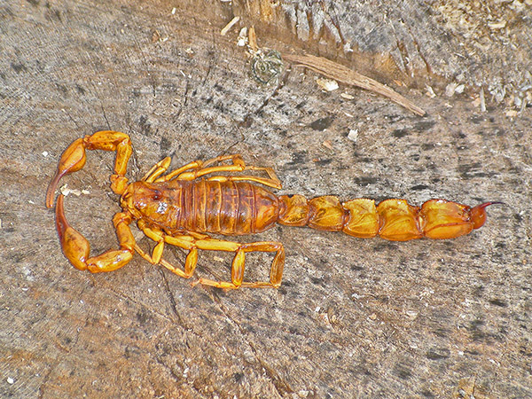 Reconnaissable à sa couleur jaune paille, ce scorpion représente une menace pour l’homme. Son venin extrêmement toxique peut tuer un homme ou provoquer des dégâts importants et irréversibles.