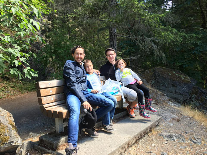 Leurs deux enfants sont, eux, très excités à l’idée de devenir grand frère et grande sœur ! Tout en sachant qu’ils auront un peu moins de temps à passer avec leurs pères occupés par le nouveau bambin !