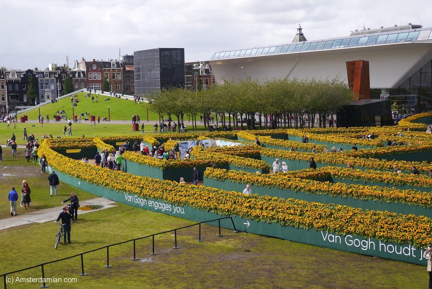 Un concept original et éphémère s’est tenu à l’entrée du musée Vincent Van Gogh d’Amsterdam. Un labyrinthe géant fait de tournesols a été mis en place pour un week-end seulement afin de célébrer l’ouverture de ce musée dédié au célèbre peintre flamand, inauguré en 1973.