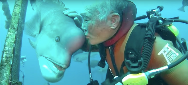 Lors d’une de ses plongées il y a de ça 30 ans, il a fait l'heureuse rencontre de ce « petit » poisson quand il tournait autour du sanctuaire épuisé et blessé. En effet, Yoriko ne pouvait pas se nourrir en raison de multiples blessures, Hiroyuki s’est donc chargé de l’aider : « je l’ai nourri avec 5 crabes tous les jours, pendant une dizaine de jours ». Cette histoire rappelle la relation affective dont on vous parlait il y a de ça quelques mois dans un article entre un plongeur et un requin dormeur !