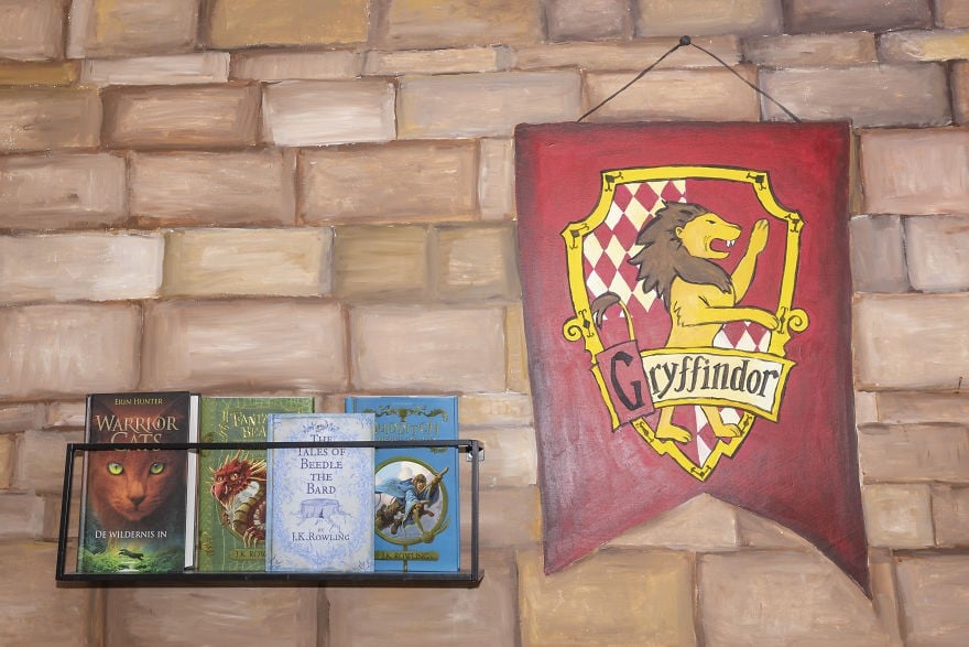 Il y a quelques années, J.K. Rowling a lancé le site web Pottermore basé sur l’univers de Harry Potter. Ce site informait sur la vie des personnages à travers des articles inédits à la fin de chaque tome. Il a été clôturé en 2019 pour faire place à un nouveau site. À l’exemple de ce père ayant réalisé des peintures murales à l’ambiance Disney dans la chambre de ses filles, Indra Sponk a décidé à son tour d’apporter une touche magique à la chambre de sa fille Willow en y instaurant l’ambiance de Poudlard. Poudlard est le nom de l’école de sorciers d’Harry Potter.