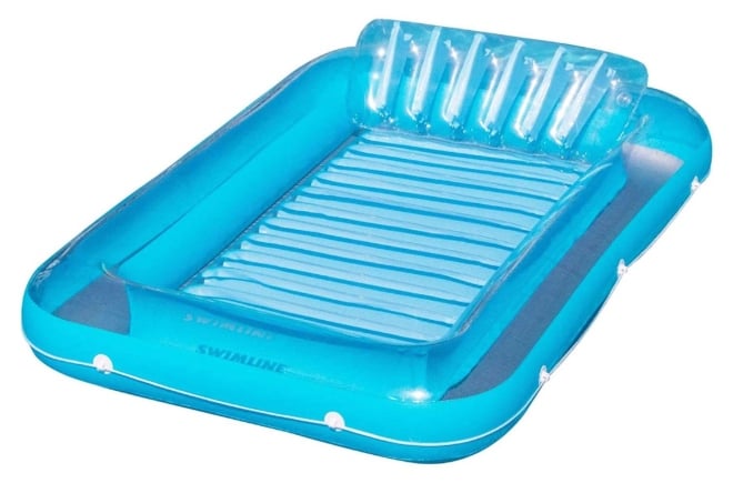 La principale différence entre un matelas de piscine classique et le Suntan Tub que nous vous présentons aujourd’hui est les hauts bords. En effet, ces derniers permettent de le remplir d'eau et ainsi de profiter d’une meilleure relaxation et d’une position de repos plus confortable. Et pour ne rien gâcher au plaisir, nous vous rappelons que l’objet est également équipé d'un fauteuil inclinable intégré que vous pourrez choisir d’utiliser ou de retirer selon votre humeur et votre envie du jour. Et si jamais, plus tard, vous franchissez le pas et avez une vraie piscine, cet accessoire gonflable sera toujours utilisable à la surface de celle-ci.