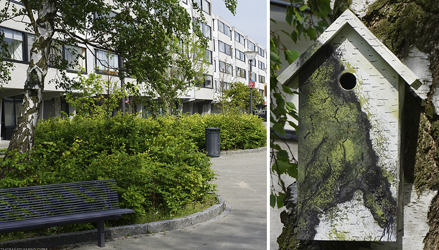 En effet, Thomas Dambo souhaite sensibiliser à la présence des oiseaux en ville et les aider à cohabiter avec nous. Et pour montrer aux gens qu’ils peuvent cohabiter et passer inaperçus en même temps, il réalise des abris qui se fondent dans le décor. On vous laisse apprécier ce travail plein d’humour et dans l’air du temps.