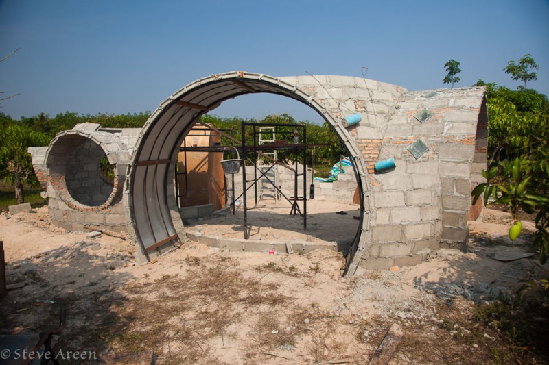 Puis, il s’est armé de blocs de bétons qu’il empila pour en faire de larges dômes…