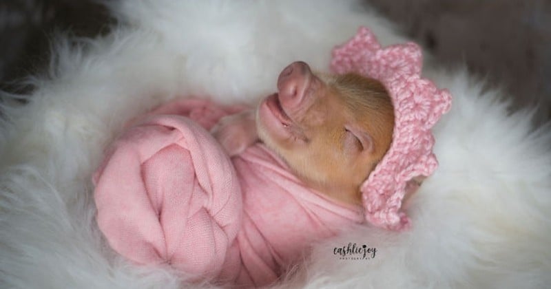 Cette photographe réalise une séance photo de nouveau-né avec un porcelet adorable