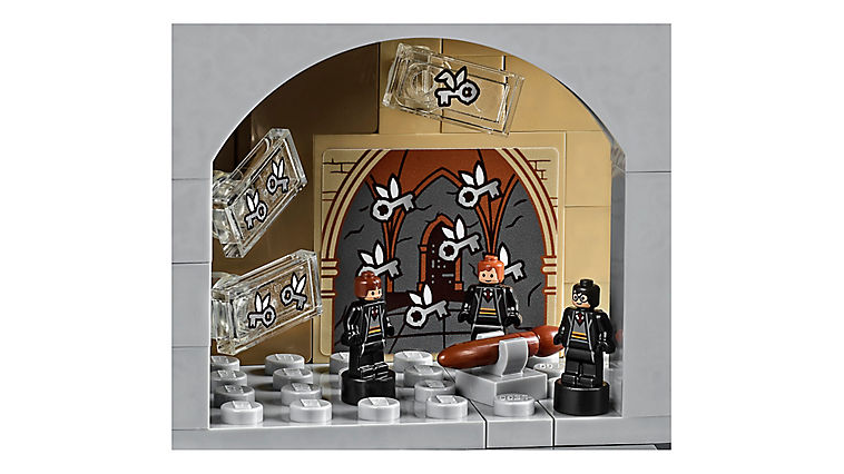 L'ensemble de construction designé par la célèbre compagnie de jeux LEGO comprend 6 020 pièces extrêmement détaillées. Le château de Poudlard mesure plus de 58 cm de haut, 69 cm de large et 43 cm de profondeur. On y retrouve de nombreux objets et lieux emblématiques de la saga Harry Potter, tels que le saule cogneur, la cabane de Hagrid, une salle de classe de potions, une autre de défense contre les forces du Mal, la pièce commune de Gryffondor, ou encore le Bureau du professeur Dumbledore.
