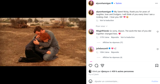 Alyson Hanningan, qui jouait Willow, a publié un message émouvant sur son compte Instagram.