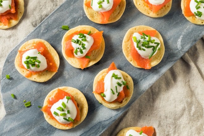 Pour un apero en buffet, pensez à ces recettes originales avec du saumon fumé, une cuisine raffinée pour les fêtes. Crédit : istock