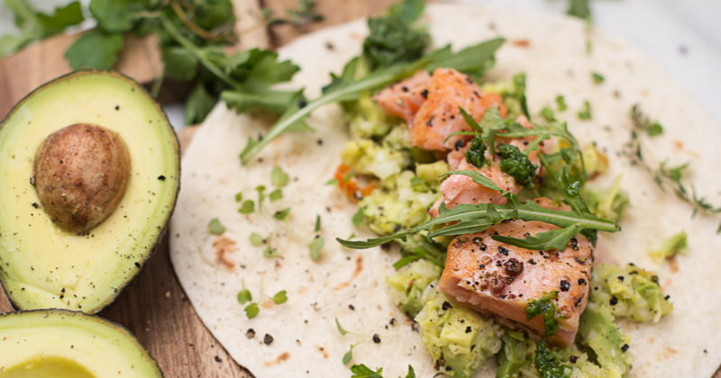 Le saumon et l’avocat constituent toujours une parfaite combinaison, c'est indiscutable. Il vous faudra 15 minutes de cuisson du saumon avant d’assembler avec tous les autres ingrédients, votre wrap healthy.