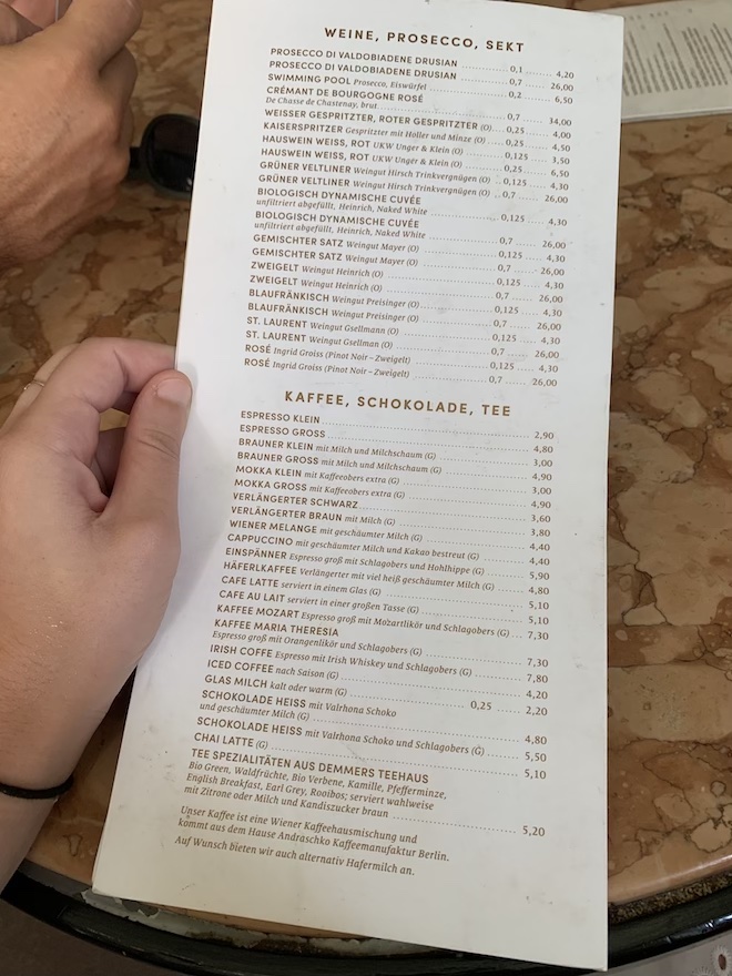 La carte d'un café viennois. Crédit : Célia Papaïx