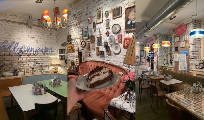 Vollpension, ce n’est pas simplement un café parmi tant d’autres. C’est un lieu de rencontre, un lieu de partage où les “vieux et les jeunes” se mélangent. On s’y sent bien, comme chez mamie avec cette décoration presque kitsch et l’odeur du gâteau qui sort du four. Une deuxième adresse a même vu le jour en 2019 dans une université et Vollpension propose des cours de pâtisserie en ligne, se déplace sur les marchés de Noël et a même des petits goodies vintages.