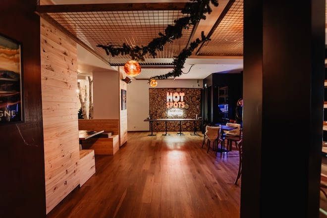 Mais chez Hot Spots by RichesMonts, on ne fait pas la fête que dans l'assiette ! Le restaurant éphémère propose du jeudi au samedi des sessions piano-bar pour une ambiance encore plus conviviale et pleine de charme. De quoi prolonger le plaisir de votre soirée raclette ! Et en plus de sa grande salle, Hot Spots met à disposition un espace privatisable en sous-sol pouvant accueillir jusqu'à 20 personnes. Idéal pour les anniversaires ou une réunion familiale façon chalet de montagne !
