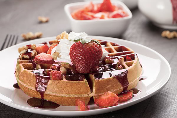 3. Faire préchauffer un gaufrier puis ajouter un peu de pâte dans chaque alvéole. Cuire environ 4 minutes. Servir avec vos garnitures préférées.