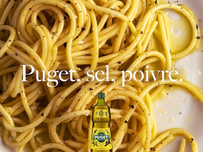Forte de ses 160 ans d'histoire, la marque n°1 des huiles d'olive en France Puget écrit un nouveau chapitre dans son livre avec cette nouvelle campagne authentique, sincère et qui sent bon le soleil. "Puget, sel, poivre", une signature qui sonne comme une recette accessible et généreuse, à la portée de tous et qui promet de transformer n'importe quel produit en plat délicieux. La campagne, imaginée par l'agence Romance, incarne donc un retour aux sources avec des ingrédients bruts, un geste simple et des moments de partage qui rassemblent. De quoi revenir à l'essence même de Puget.