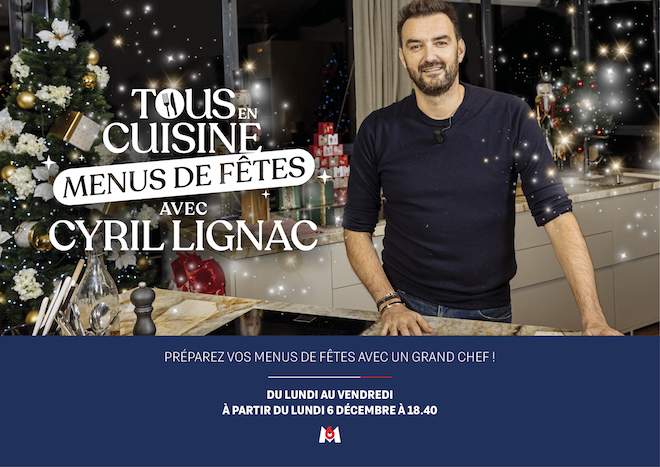 Le chef Cyril Lignac et son acolyte Jérôme Anthony se relancent dans l'aventure «Tous en cuisine» pour une spéciale Menus de Fête à partir du 6 décembre prochain sur M6 ! Ils vous donneront rendez-vous tous les soirs de la semaine pour cuisiner des recettes faciles et accessibles pour les fêtes de fin d'année !