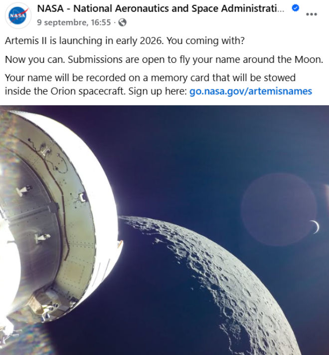 Si vous voulez faire voyager gratuitement votre nom dans la capsule Orion, inscrivez-vous sur le site de la NASA et remplissez le formulaire avant le 21 janvier 2026. Cette démarche est totalement gratuite et, selon Le Parisien, plus de 500 000 personnes se sont déjà inscrites. Ce n’est pas la première fois qu’un tel événement a lieu puisqu’en 2024, 2 millions de personnes ont voyagé virtuellement avec leurs noms à bord d’Europa Clipper, un satellite de la planète Jupiter.