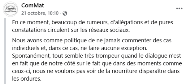 “Tout cela semble très trompeur car le dialogue n’a en réalité porté que sur le fait que nous ne voulons pas voir de nourriture partir à la poubelle. Nous sommes les premiers à admettre que la conversation a peut-être pris une tournure qui ne satisfait personne et nous nous sommes bien sûr excusés”, peut-on lire sur la page Facebook de l’établissement.