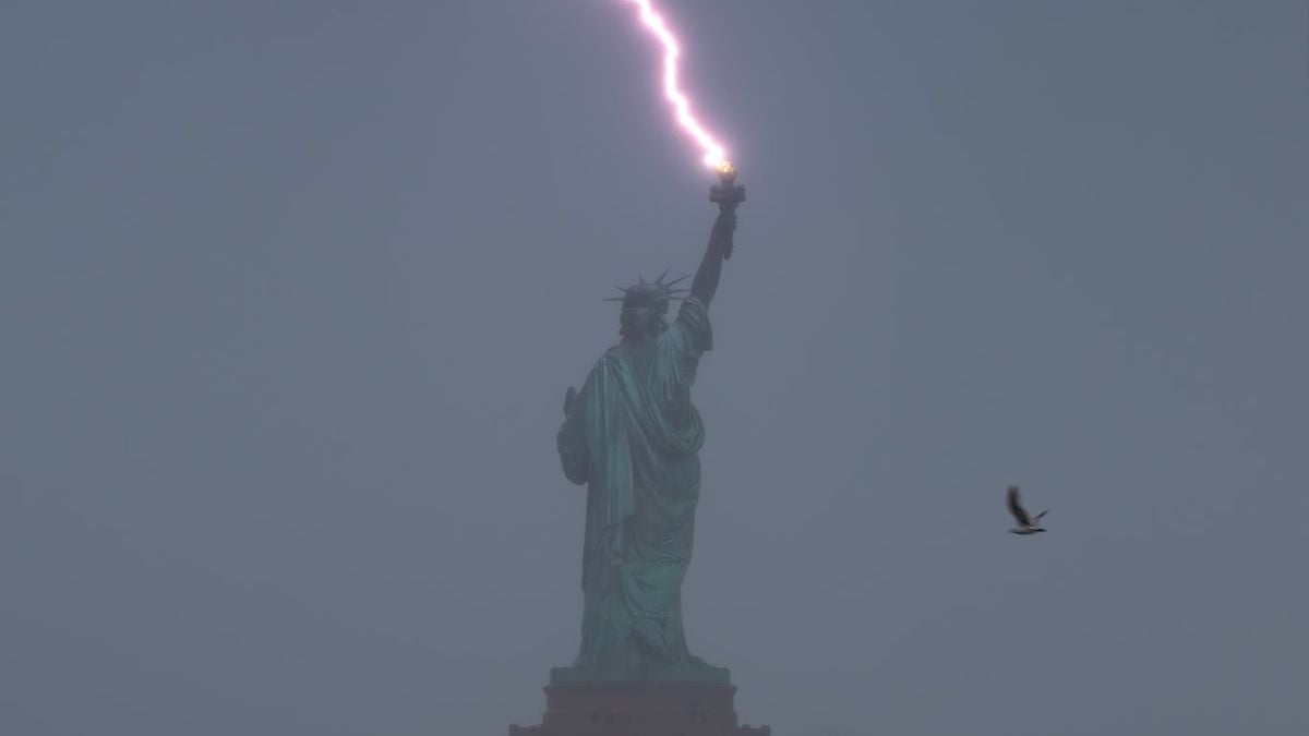 Quand la foudre frappe la Statue de la Liberté à New York